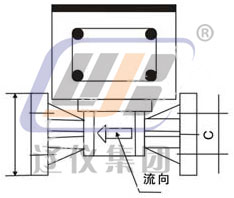從箭頭所示的一側進入流量計的液體推動阻尼器,使之固定在測量室。因為簧的彈性和阻尼器的角度而使總是位于零位的阻尼器是根據流量大小而改的。